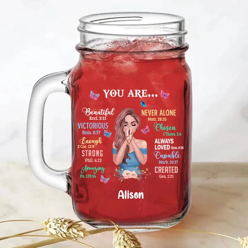 Personalized Praying Girl Mason Jug - Gift Idea for Girls/Friends - You Are Beautiful