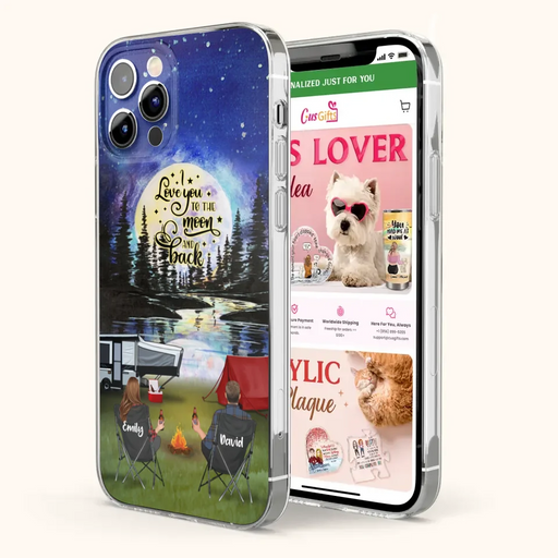 View full detailsCustom Personalized Camping Moon Phone Case - Couple/ Parents With Upto 3 Kids And 4 Pets - Gift Idea For Camping Lover - I Love You To The Moon And Back - Case For iPhone And Samsung