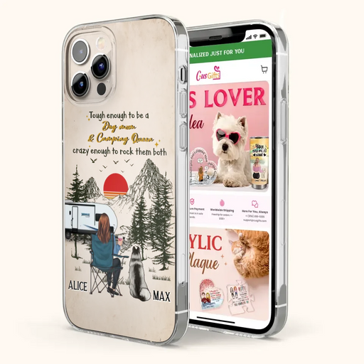 View full detailsCustom Personalized Dog Mom Phone Case - Upto 4 Dogs - Mother's Day Gift Idea Dog/Camping Lovers - Tough Enough To Be A Dog Mom And Camping Queen Crazy Enough To Rock Them Both - Case For iPhone/Samsung