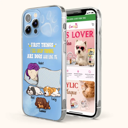 View full detailsCustom Personalized Dog Mom Sleep Phone Case - Upto 3 Dogs - First Things I See Every Morning Are Dogs Who Love Me