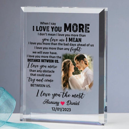 Personalized Photo Couple Rectangle Acrylic Plaque - Gift Idea For Him/Her/Mother's Day Gift From Husband - When I Say I Love You More