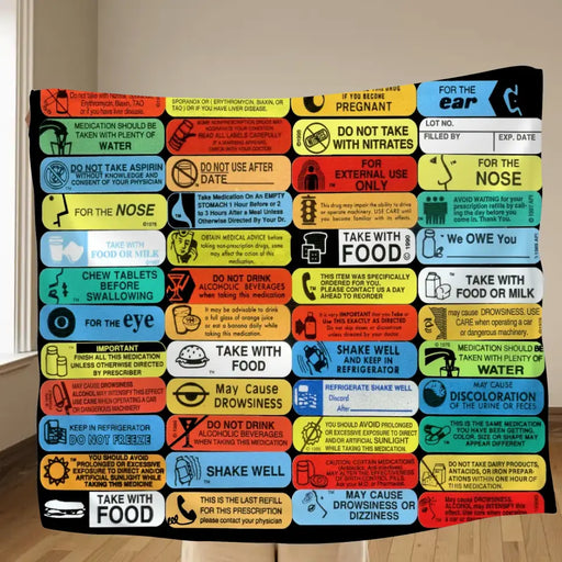 Personalized Pharmacy Labels Quilt/Fleece Throw Blanket - Gift Idea For Friends/Family Member/Pharmacist