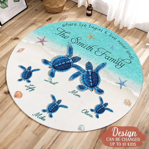 View full detailsPersonalized Turtle Family Round Rug - Gift Idea For Family/Couple - Up to 6 Kids - Where Life Begins & Love Never Ends