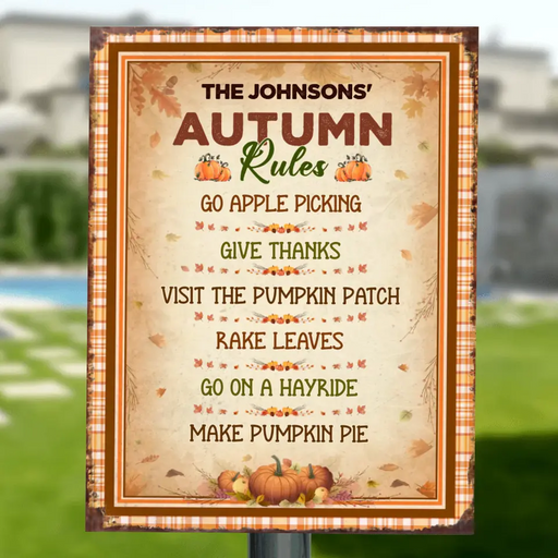 View full detailsPersonalized Autumn Rules Metal Sign - Gift Idea For Autumn Lovers - Go Apple Picking Give Thanks