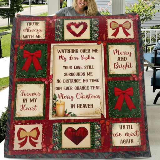 View full detailsPersonalized Christmas Memorial Fleece Throw Blanket / Quilt - Custom Name - Merry Christmas in Heaven - Sympathy Gift for Loss of Loved One