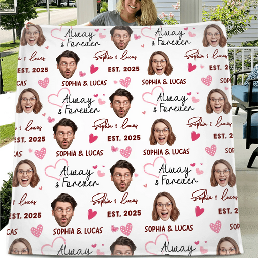 View full detailsPersonalized Couple Face Blanket - Add Your Faces, Names & Anniversary Year - Cute & Fun Valentine’s Gift