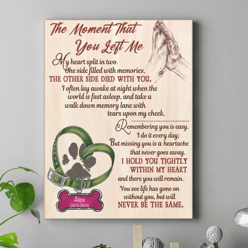 Personalized Memorial Pet Pawprint Canvas - Memorial Gift Idea For Dog/Cat Lover - The Moment That You Left Me