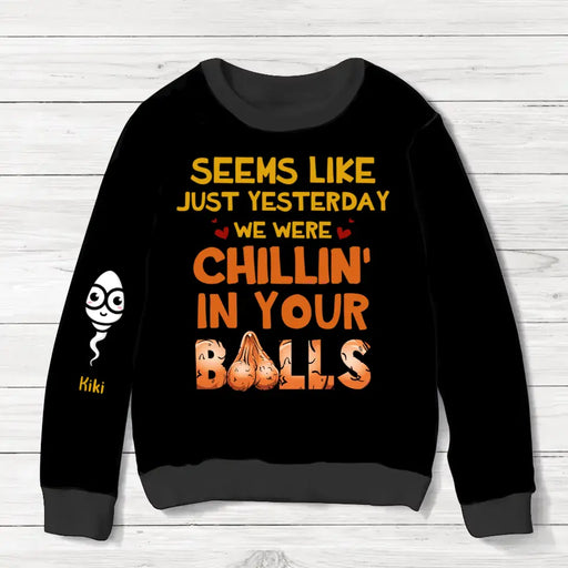 View full detailsPersonalized Dad AOP Sweater - Up to 6 Children - Christmas Gift Idea for Father - Seems Like Just Yesterday We Were Chillin' In Your Balls