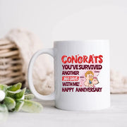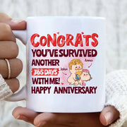 Custom Personalized Couple Coffee Mug - Best Gift Idea For Husband/ Wife/ Birthday/ Anniversary - Congrats You've Survived Another 365 Days With Me! Happy Anniversary