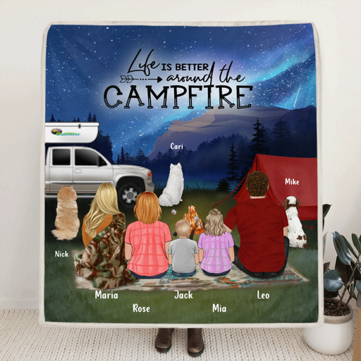 View full detailsPersonalized Night Beach Camping Quilt/Fleece Blanket - Gift for Whole Family, Camping Lovers - Couple/Parents with Up to 6 Kids - Life is better around the campfire
