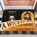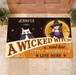 Personalized Halloween Witch Cat Doormat - Gift Idea For Family/Pet Lover - Up to 7 Cats - A Wicked Witch And Her Little Meownsters Live Here
