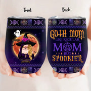 Personalized Goth Mom Wine Tumbler - Up to 5 Children - Halloween Gift Idea for Mom - Goth Mom Like Regular Mom But Spookier