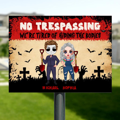 View full detailsCustom Personalized Halloween Horizontal Metal Sign - Gift Idea For Halloween/ Couple - No Trespassing We're Tired Of Hiding The Bodies