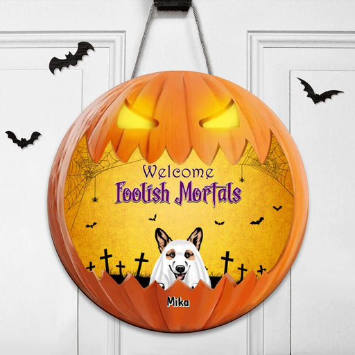 View full detailsCustom Personalized Halloween Dog Wooden Sign - Up to 6 Dogs - Halloween Decoration For Dog Lovers - Welcome Foolish Mortals