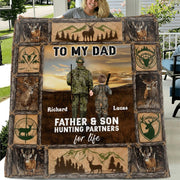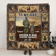 Personalized Hunting Dad & Son Fleece Throw Blanket/Quilt - Gift Idea For Hunting Lovers/Father's Day Gift - Father & Son Hunting Partners For Life