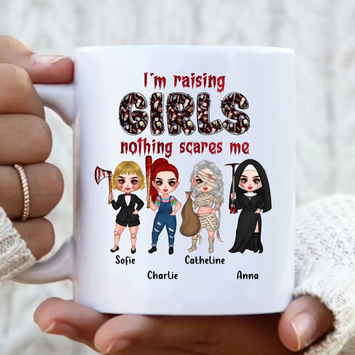 Personalized Horror Girl Mug Coffee - Up to 4 Girls -I'm Raising Girls Nothing Scares Me