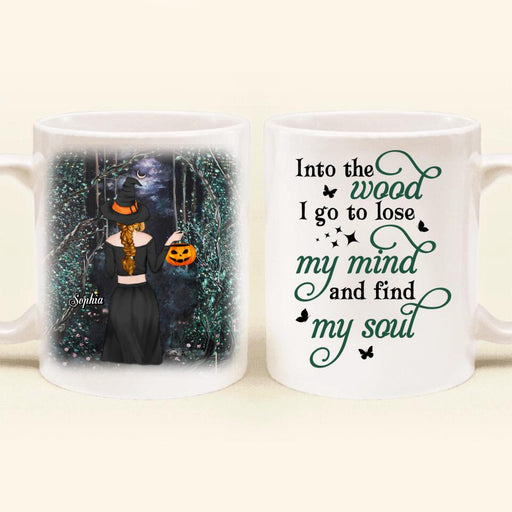 Custom Personalized Witch Coffee Mug - Halloween Gift Idea - Into The Wood I Go To Lose My Mind And Find My Soul