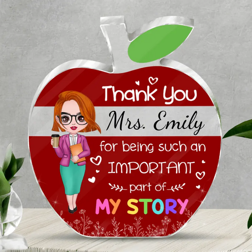 View full detailsPersonalized Teacher Apple Shaped Acrylic Plaque - Birthday, School Leaving, Appreciation Gift For Teachers - Thank You For Being Such An Important Part Of My Story