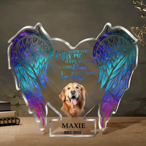 View full detailsPersonalized Memorial Acrylic Plaque - Memorial Gift Idea For Dog Lover - Upload Dog Photo - When You Miss Me Have No Fear Hold This Plaque And Know I'm Here