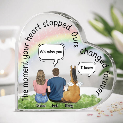 View full detailsPersonalized In Loving Memory Horse Heart-Shaped Acrylic Plaque - Memorial Gift Idea For Horse Lover - Adult/Couple With Up to 4 Horses - The Moment Your Heart Stopped Ours Changed Forever