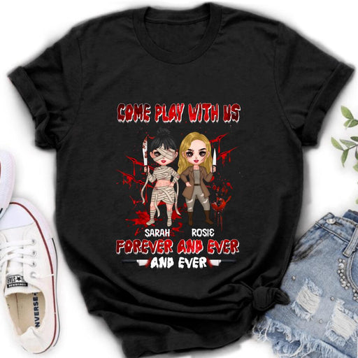 View full detailsPersonalized Besties T-shirt/Sleeve/Sweatshirt/Hoodie - Halloween Gift for Best Friends - Up to 4 Besties - Come play with us forever and ever and ever