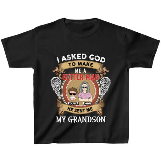 View full detailsPersonalized Grandma Kid T-shirt/Unisex T-Shirt - Gift Idea For Grandma From Kids - I Asked God To Make Me A Better Man He Sent Me My Grandson