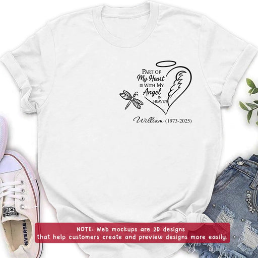 View full detailsPersonalized Memorial Embroidered T-Shirt/Sweater/Hoodie - Memorial Gift Idea - Part Of My Heart Is With My Angel In Heaven
