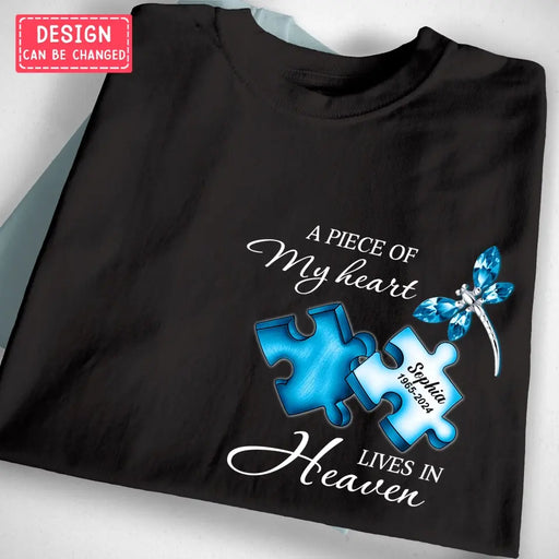 View full detailsPersonalized Memorial Shirt/Hoodie - Memorial Gift For Family Member - A Piece Of My Heart Lives In Heaven