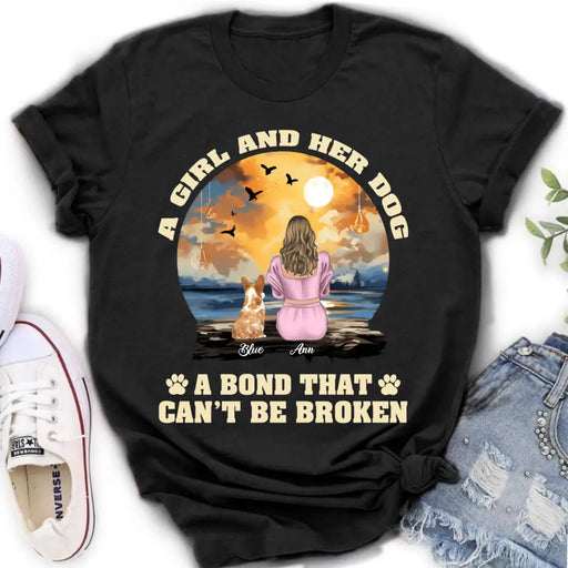 View full detailsPersonalized Dog Mom Shirt/Hoodie - Gift Idea for Dog Lover - Up to 4 Dogs - A Girl And Her Dog A Bond That Can't Be Broken
