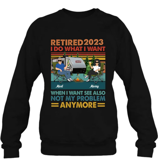 View full detailsPersonalized Couple Camping Shirt/Hoodie - Gift Idea For Camping Lovers/Couple - Retired 2023 I Do What I Want When I Want To See Also Not My Problem Anymore