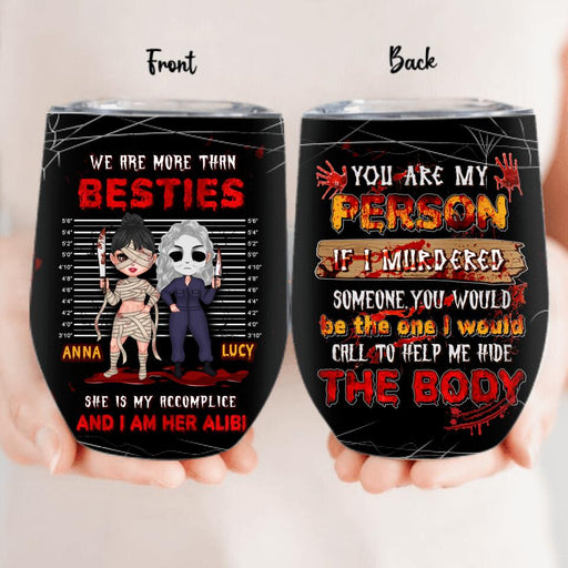 View full detailsCustom Personalized Accomplice & Alibi Friends/ Sisters Wine Tumbler - Halloween Gift Idea For Friends/ Sisters - You Are My Person