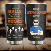 Personalized Best Father Tumbler - Gift Idea For Father's Day - Up to 6 Sperms - Of All The Balls In The World We're Glad We Came Out Of Yours