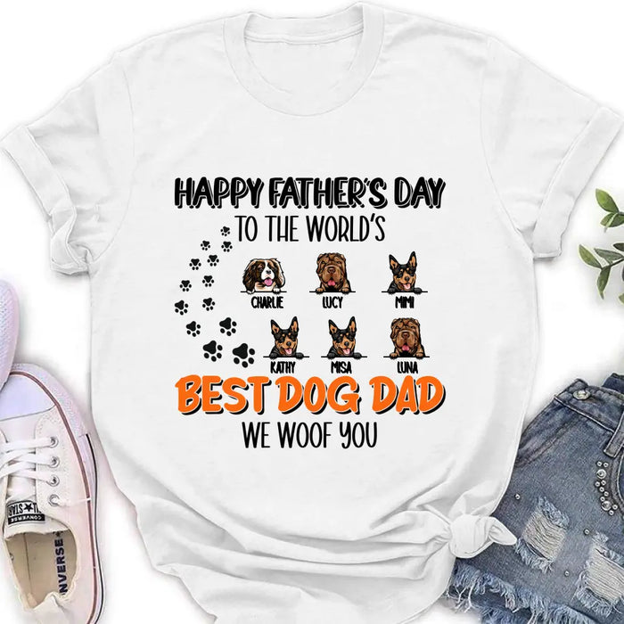 Personalized Best Dog Dad T-shirt/Long Sleeve/Sweatshirt/Hoodie - Up to 6 Dogs - Gift Idea For Dog Lovers - Happy Father's Day To The World's Best Dog Dad We Woof You