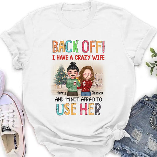 Personalized Couple Shirt/Hoodie - Anniversary/Wedding/Christmas Gift Idea for Couple - Back Off I Have A Crazy Wife And I'm Not Afraid To Use Her