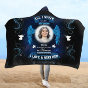 Personalized Memorial Photo Hooded Blanket With Soft Fleece Lining - Memorial Gift Idea For Loss Mom - All I Want Is For My Mom In Heaven To Know How Much I Love & Miss Her